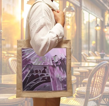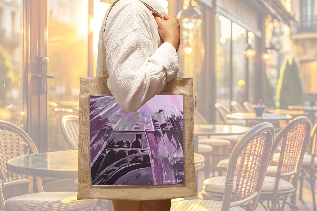 16 x 17 cm. Pochette extérieure de 30 x 28,5 cm en toile cirée, munie d'un rabat dans laquelle est insérée une toile imprimée Canvas.