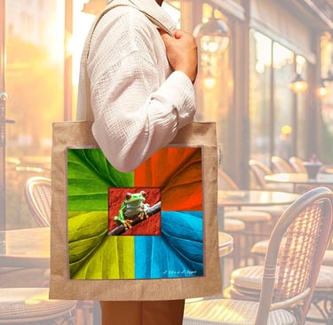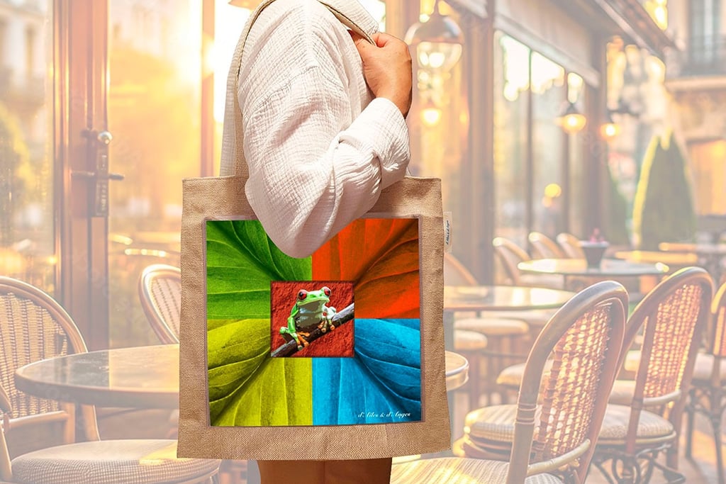 16 x 17 cm. Pochette extérieure de 30 x 30 cm en toile cirée, munie d'un rabat dans laquelle est insérée une toile imprimée Canvas.