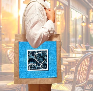 16 x 17 cm. Pochette extérieure de 30 x 30 cm en toile cirée, munie d'un rabat dans laquelle est insérée une toile imprimée Canvas.