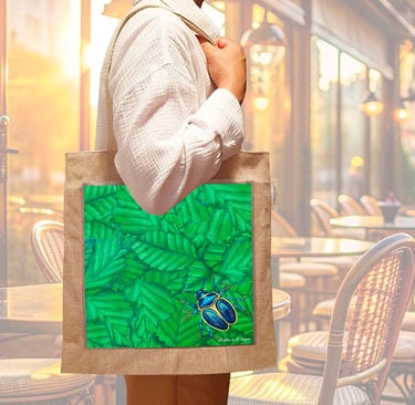16 x 17 cm. Pochette extérieure de 30 x 30 cm en toile cirée, munie d'un rabat dans laquelle est insérée une toile imprimée Canvas.